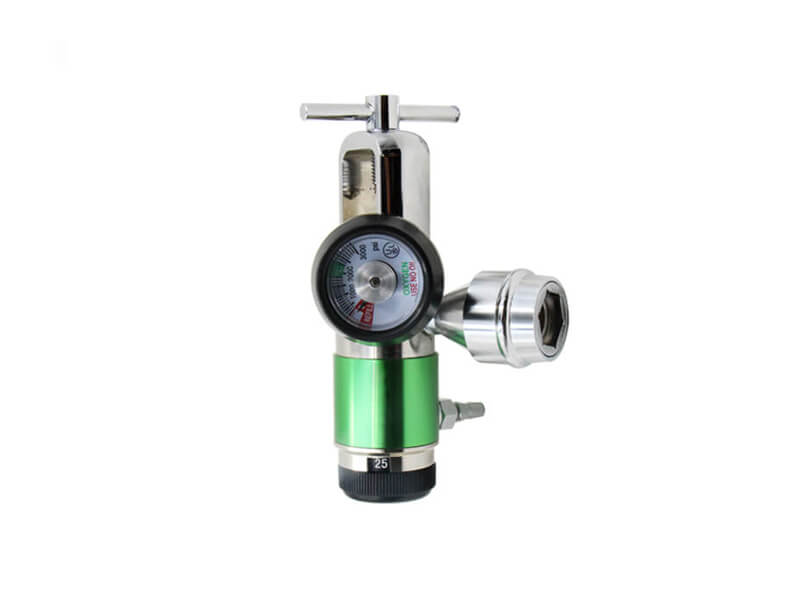 The click style CGA870 regulator uses a pin-index yoke connection and features a solid brass granular mesh filter at the inlet to effectively block impurities and ensure clean and stable gas flow. Users can easily and accurately select preset oxygen flow rates of 0-1/0-2/0-4/0-6/0-8/0-15/0-25 L/min via rotation. The included Schrader outlet provides multiple outlet standards to meet diverse market needs. It also features a diss/nipple port for connecting oxygen tubing, masks, and treatment equipment.